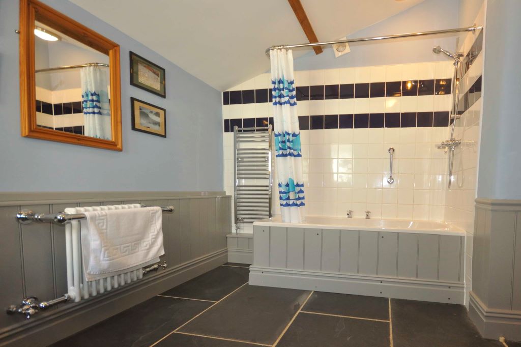 The Granary is a converted agricultural building partially built into the hillside made of brick, stone and cob, retaining many original features. The accommodation is set out in reverse order, with the first floor entrance through stable doors into an open plan living room and kitchen. The roof space has been opened up exposing the timbers. The spacious bathroom is situated between the first and ground floors, it has a double ended bath with shower over. There are two bedrooms downstairs, a double with a king size bed and a twin room with two single beds. Dog friendly, the holiday cottage is a great place to base your Cornish self catering holiday.